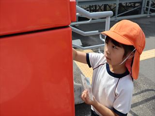 完成したはがきは、近くのポストまで、みんなで歩いて投函しに行きました。