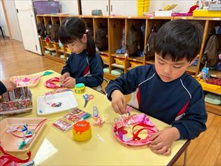 3月3日はひなまつり。今日の日に向けて、ひな祭り製作をしました。
