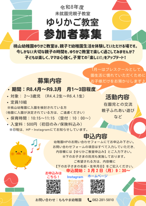 園よりお問い合わせの連絡をさせて頂く場合がございます。